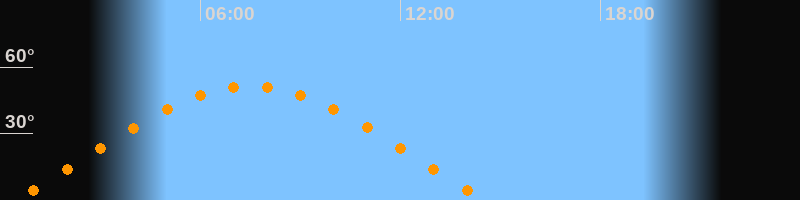 | Höchster Stand (Kulmination) | 07:30 Uhr (h = 51,4°) |