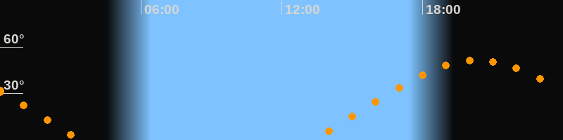 | Aufgang | 13:17 Uhr im Osten (αAz = 69,8°) |