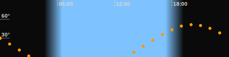 | Aufgang | 13:05 Uhr im Osten (αAz = 69,8°) |