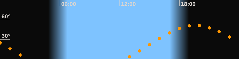 | Aufgang | 12:33 Uhr im Osten (αAz = 69,8°) |