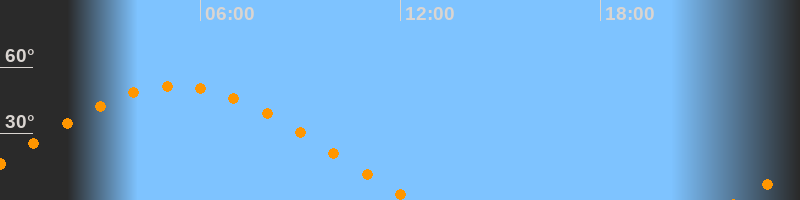 | Untergang | 12:20 Uhr im Westen (αAz = 290,2°) |