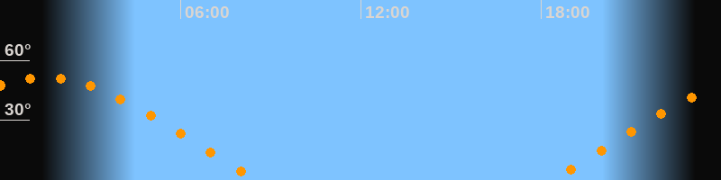| Aufgang | 18:20 Uhr im Osten (αAz = 69,8°) |