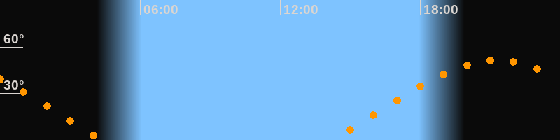 | Aufgang | 14:13 Uhr im Osten (αAz = 69,8°) |