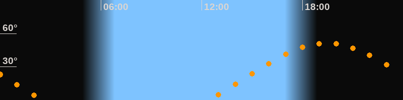 | Aufgang | 12:23 Uhr im Osten (αAz = 69,8°) |