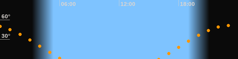 | Aufgang | 16:00 Uhr im Osten (αAz = 69,8°) |