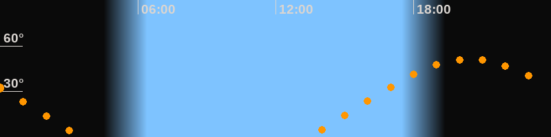| Aufgang | 13:22 Uhr im Osten (αAz = 69,8°) |