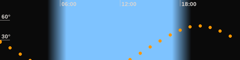 Höchster Stand (Kulmination)19:54 Uhr (h = 51,4°)