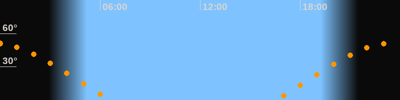 | Aufgang | 16:28 Uhr im Osten (αAz = 69,8°) |