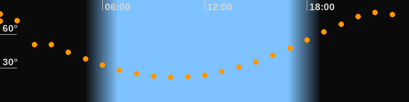 | Höchster Stand (Kulmination) | 22:11 Uhr (h = 79,4°) |