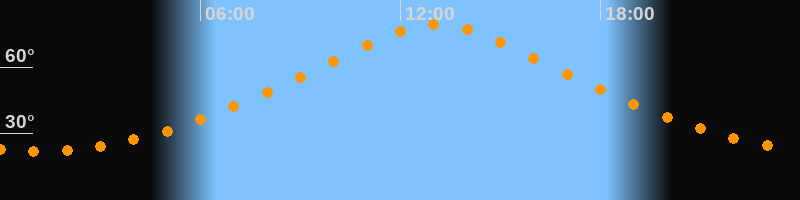 | Höchster Stand (Kulmination) | 13:05 Uhr (h = 79,4°) |