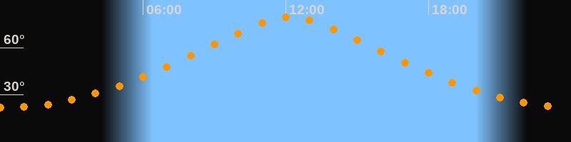| Höchster Stand (Kulmination) | 12:11 Uhr (h = 79,4°) |