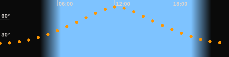 | Höchster Stand (Kulmination) | 12:08 Uhr (h = 79,4°) |