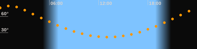 | Höchster Stand (Kulmination) | 01:06 Uhr (h = 79,4°) |