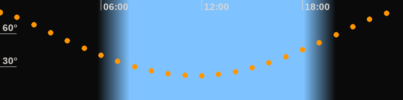 | Höchster Stand (Kulmination) | 23:35 Uhr (h = 79,4°) |
