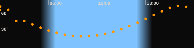 | Höchster Stand (Kulmination) | 22:11 Uhr (h = 79,4°) |