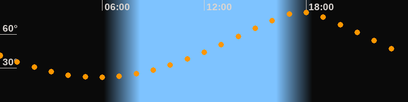 | Höchster Stand (Kulmination) | 17:44 Uhr (h = 79,4°) |
