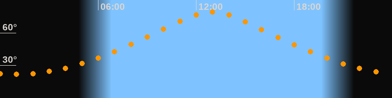 | Höchster Stand (Kulmination) | 12:58 Uhr (h = 79,4°) |