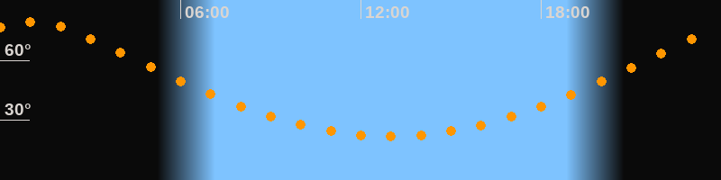 | Höchster Stand (Kulmination) | 00:59 Uhr (h = 79,4°) |