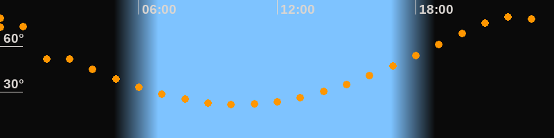 | Höchster Stand (Kulmination) | 22:16 Uhr (h = 79,4°) |