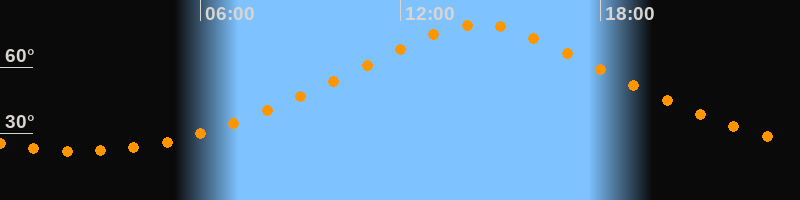 | Höchster Stand (Kulmination) | 14:22 Uhr (h = 79,4°) |