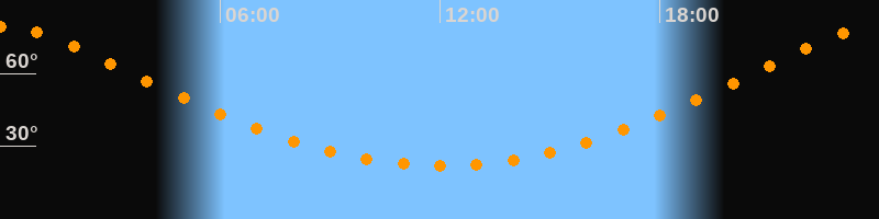 | Höchster Stand (Kulmination) | 00:01 Uhr (h = 79,4°) |