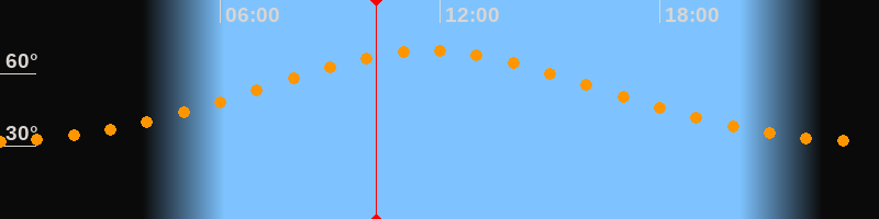 | Höchster Stand (Kulmination) | 11:43 Uhr (h = 69,3°) |