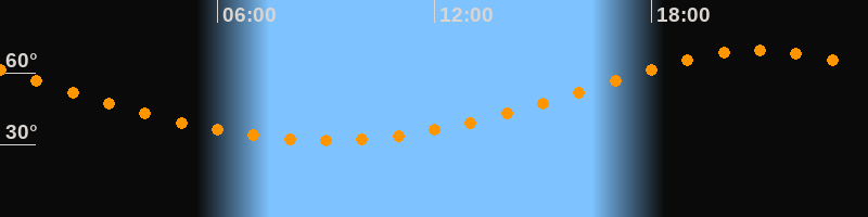 | Höchster Stand (Kulmination) | 20:58 Uhr (h = 69,3°) |
