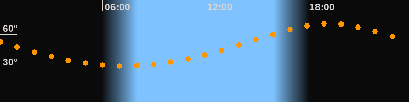 | Höchster Stand (Kulmination) | 19:16 Uhr (h = 69,3°) |