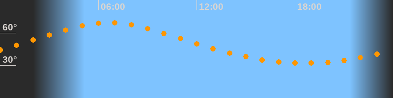 | Höchster Stand (Kulmination) | 06:39 Uhr (h = 69,3°) |