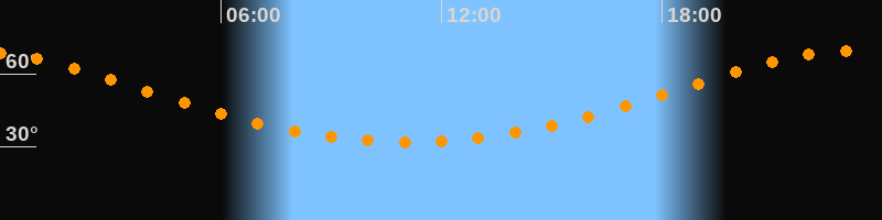 | Höchster Stand (Kulmination) | 23:06 Uhr (h = 69,3°) |