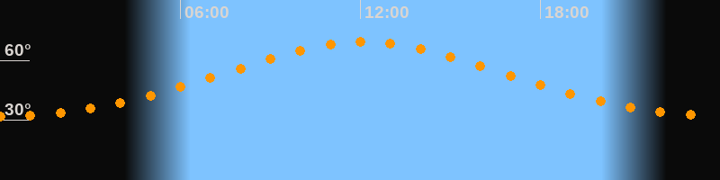 | Höchster Stand (Kulmination) | 12:06 Uhr (h = 69,3°) |