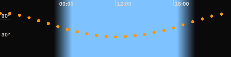 | Höchster Stand (Kulmination) | 00:10 Uhr (h = 69,3°) |