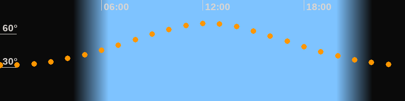 | Höchster Stand (Kulmination) | 12:20 Uhr (h = 69,3°) |