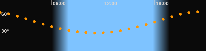 | Höchster Stand (Kulmination) | 23:03 Uhr (h = 69,3°) |