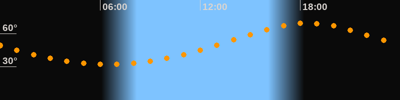 | Höchster Stand (Kulmination) | 18:27 Uhr (h = 69,3°) |