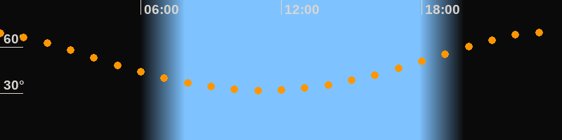| Höchster Stand (Kulmination) | 23:12 Uhr (h = 69,3°) |