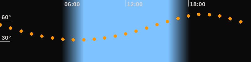 | Höchster Stand (Kulmination) | 19:27 Uhr (h = 69,3°) |