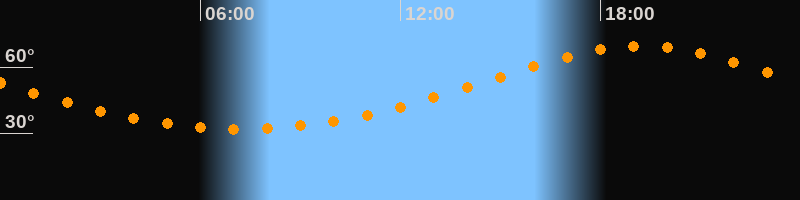 | Höchster Stand (Kulmination) | 19:12 Uhr (h = 69,3°) |