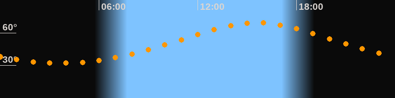 | Höchster Stand (Kulmination) | 15:36 Uhr (h = 69,3°) |