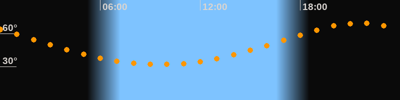 | Höchster Stand (Kulmination) | 21:32 Uhr (h = 69,3°) |