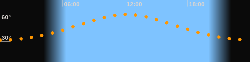 | Höchster Stand (Kulmination) | 12:07 Uhr (h = 69,3°) |