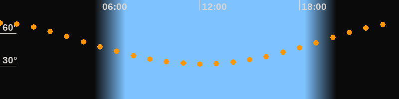 | Höchster Stand (Kulmination) | 00:04 Uhr (h = 69,3°) |