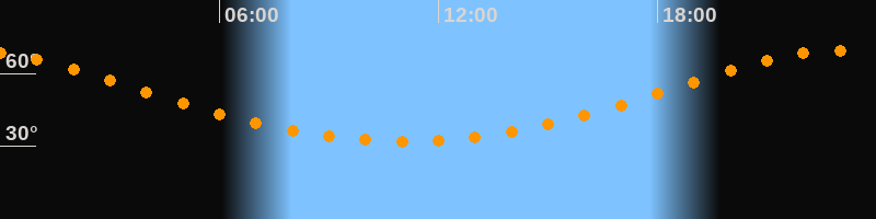 | Höchster Stand (Kulmination) | 23:01 Uhr (h = 69,3°) |