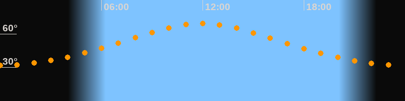 | Höchster Stand (Kulmination) | 11:57 Uhr (h = 69,3°) |