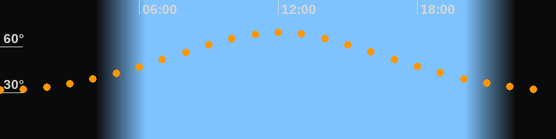 | Höchster Stand (Kulmination) | 12:02 Uhr (h = 69,3°) |