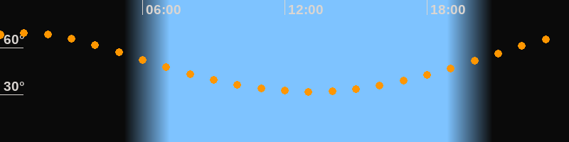| Höchster Stand (Kulmination) | 01:01 Uhr (h = 69,3°) |