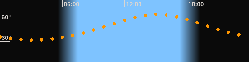 | Höchster Stand (Kulmination) | 15:06 Uhr (h = 69,3°) |