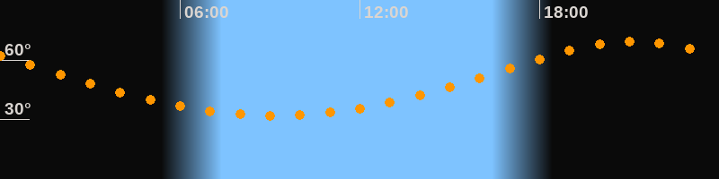 | Höchster Stand (Kulmination) | 21:09 Uhr (h = 69,3°) |