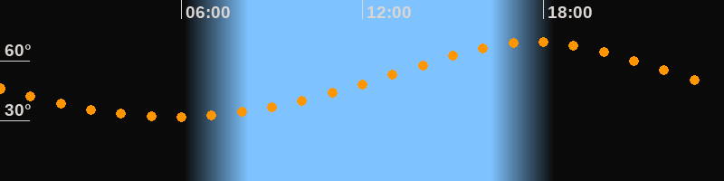 | Höchster Stand (Kulmination) | 17:43 Uhr (h = 69,3°) |