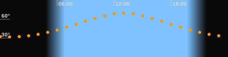 | Höchster Stand (Kulmination) | 12:59 Uhr (h = 69,3°) |